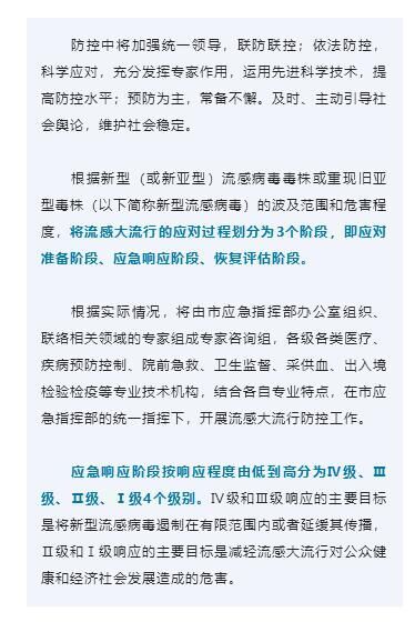 (1)动员全社会全面投入流感大流行的防控工作,并对全市卫生应急资源实施统一管理和调配。全市各级各部门按照市应急指挥部的部署落实各项疫情防控措施。
