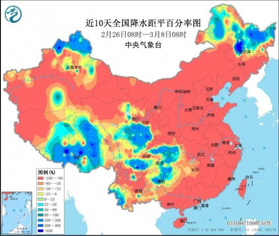 大回暖、降水稀少是过去10天我国天气的关键词。