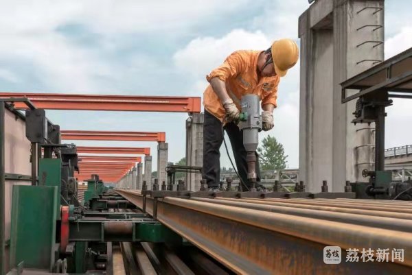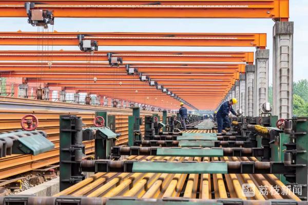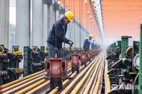 自2021年6月江苏南沿江城际铁路长钢轨供轨工作启动以来,这条高铁所需的钢轨被分成46趟长钢轨专列,从芜湖北焊轨基地运出,历时20个月全部运抵工程建设现场,为江苏南沿江城际铁路完成全线铺轨提供了充足的物资保障。