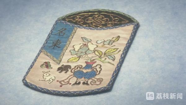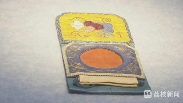 在没有名牌包包的清代,女子出门用各式各样的小挂件来装饰自己:有蓝黄缎绣花搭裢、黄缎镶蓝边绣团寿纹镜套,还有粉红缎绣平安富贵名片袋,不同物件有不同的用途。除此之外,现场展示的书法绘画作品、红妆、首饰、服饰等文物,都异常精美。