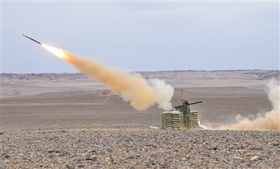 抓紧时机,肖满琪迅速扣动扳机。刹那间,导弹发出射筒,如同利剑一般刺破苍穹,尾焰升腾,弹道化作一道长虹,在风沙中直奔“敌”机,准确命中目标。
