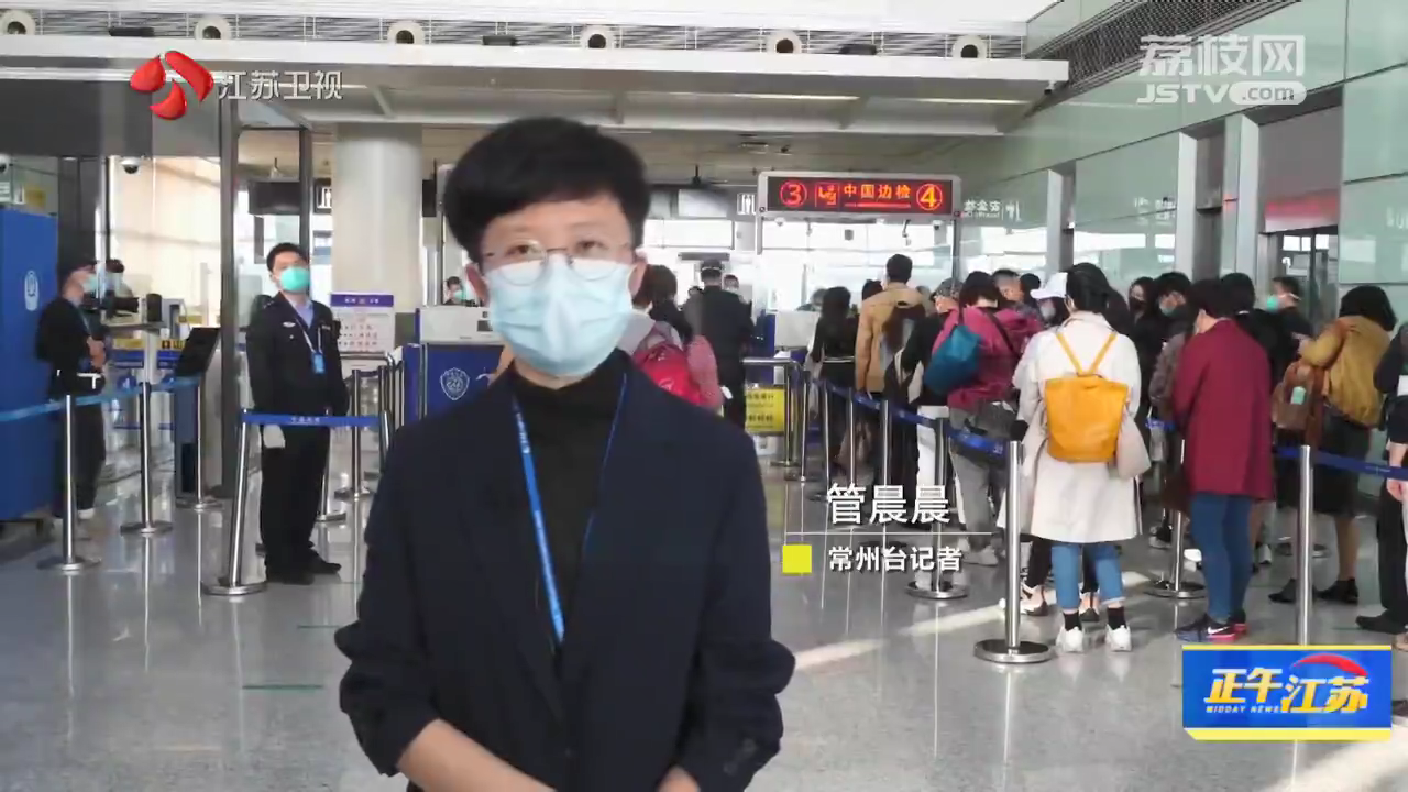 常州台记者管晨晨:“我现在是在常州机场边检出境大厅,再过一个小时,我身后从常州机场出发的首批前往泰国曼谷的旅客即将登机。”