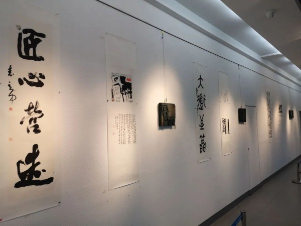 11日上午,“匠心营造”扬州市首届现代刻字艺术展在扬州市文化馆开展。26位书画家的新创作品,给观众带来别样的艺术感受。