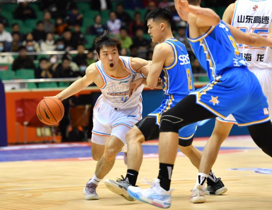 3月12日,山东队球员张辉在比赛中运球。新华社记者徐速绘摄