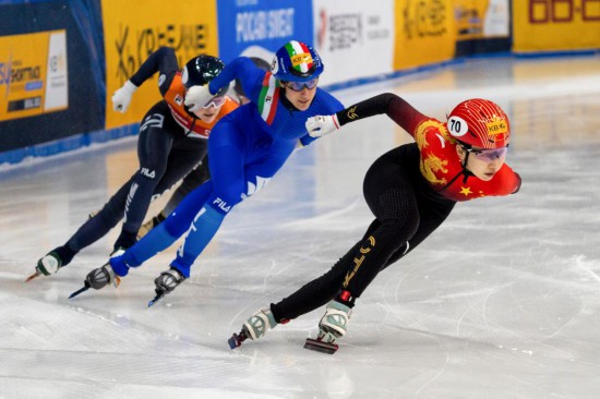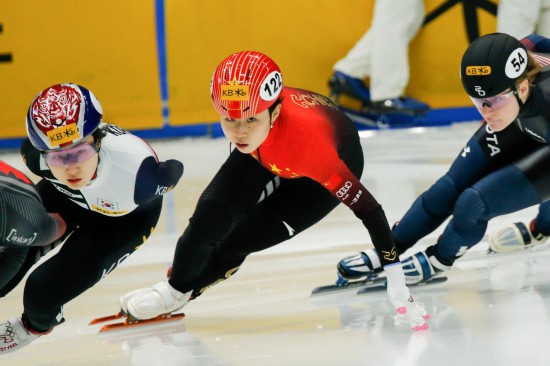 3月12日,中国选手公俐(中)在女子1000米四分之一决赛中。新华社记者 王益亮 摄