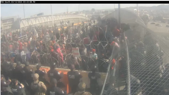 【环球网报道 记者 张晓雅】美国福克斯新闻网曝光美墨边境一幕。报道说,现场画面显示,至少有1000名移民当地时间12日涌向连接墨西哥和美国得克萨斯州埃尔帕索的北帕索国际大桥以进入美国,美国海关与边境保护局则增加了人手,以应对突如其来的人潮。