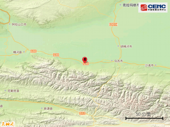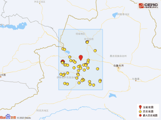 历史地震:根据中国地震台网速报目录,震中周边200公里内近5年来发生3级以上地震共55次,最大地震是2018年10月16日在新疆博尔塔拉州精河县发生的5.4级地震(距离本次震中131公里),按震级大小前50次历史地震分布如图。
