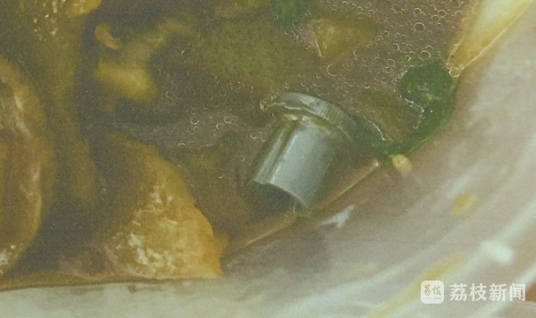 当天,张女士通过某外卖平台,点了一份餐食,可打开后竟然发现了一个金属零件,掺杂在食物中。