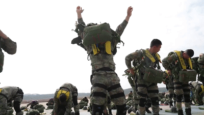 数十公斤的作战装备进行低空跳伞