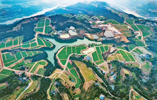 四川省巴中市通江县积极探索打造现代农业园区,促进农旅融合和现代山地高效农业发展。图为位于广纳镇的“优质粮油+青峪猪”现代农业园区(2023年1月5日摄)。 人民图片 程聪/摄