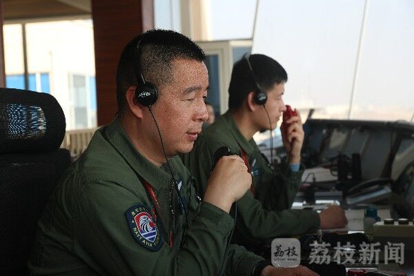 “高度好!对中好!”完成低空课目训练后,参训战机依次返航,在着舰指挥官引导下进行陆基模拟着舰训练。