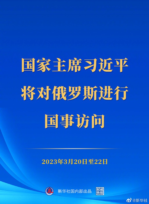 外交部发言人华春莹3月17日宣布:应俄罗斯联邦总统普京邀请,国家主席习近平将于3月20日至22日对俄罗斯进行国事访问。