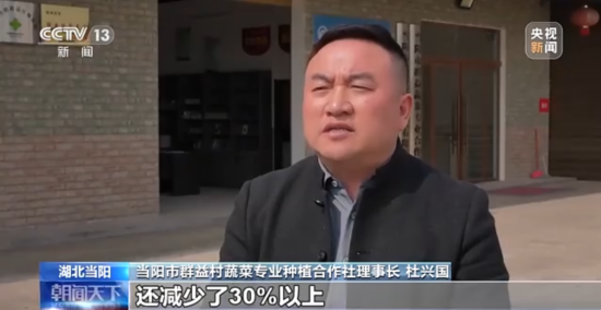 湖北当阳市群益村蔬菜专业种植合作社理事长 杜兴国:都是根据我们测土的结果来进行定制,化肥使用量在原来的基础上还减少了30%以上。