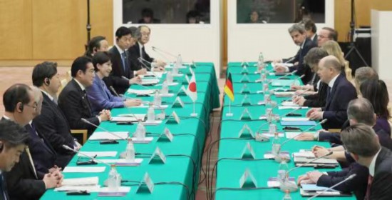 据日本电视台报道,日本首相岸田文雄18日在首相官邸会见了访日的德国总理朔尔茨及德国政府部长级官员,展开了两国间首次政府间磋商。