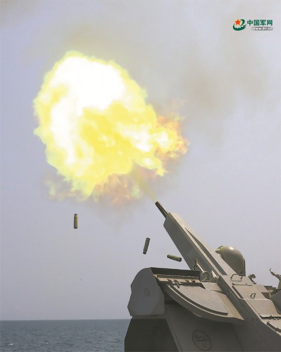 副炮进行实弹射击。