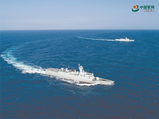 编队破浪前行。