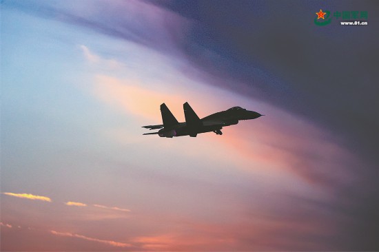 夕阳西下,余霞成绮。飞行员驾驶战机再次升空,区分红蓝双方开展实战背景下攻防对抗训练。夜色中,战机呼啸,搏击长空……
