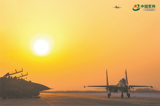 旭日初升,战机接续起飞。