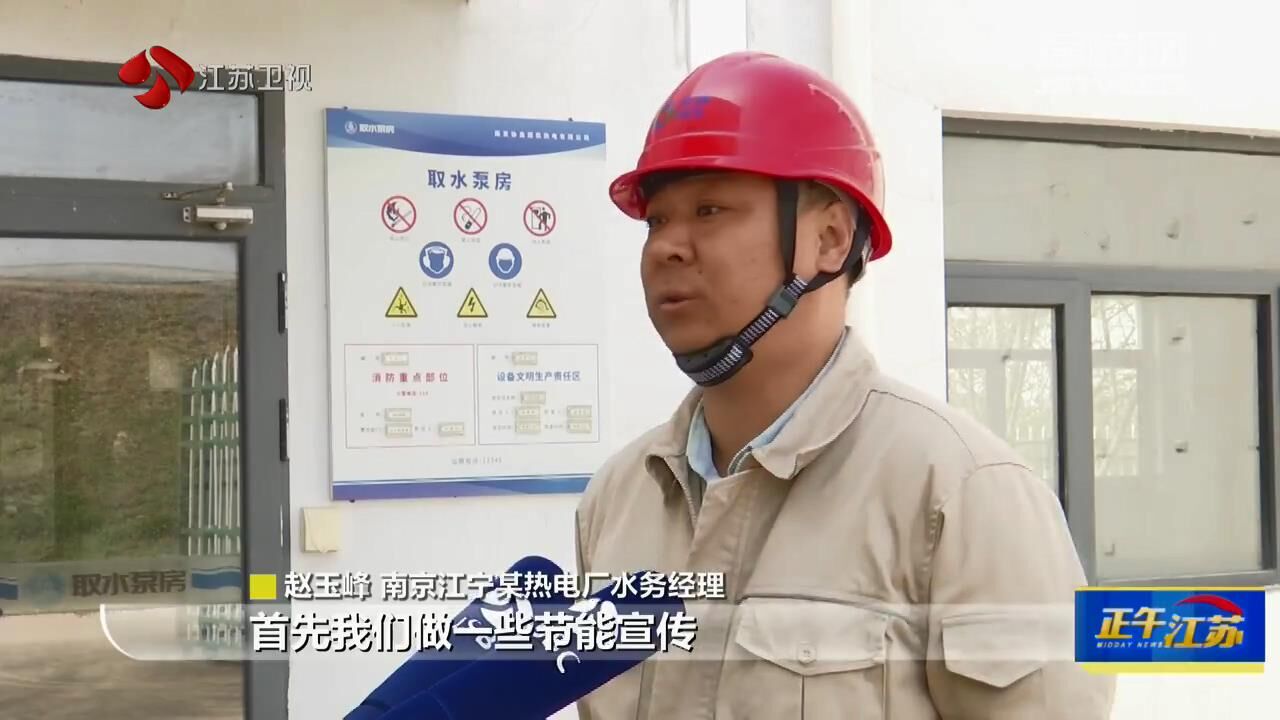 南京江宁某热电厂水务经理赵玉峰:“首先我们做一些节能宣传;使用一些节水性器具,包括节水工艺的使用;第三个就是我们设备的巡检,减少跑冒滴漏、减少外损开源节流嘛!”