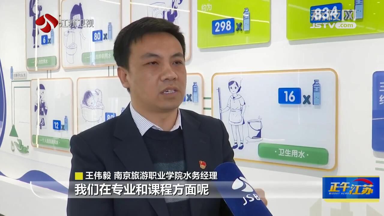 南京旅游职业学院水务经理王伟毅说:“我们在专业和课程方面呢,有效地融入了节水方面的一些知识和意识,通过一年的工作,学院节水大概比以往节约5%以上。”