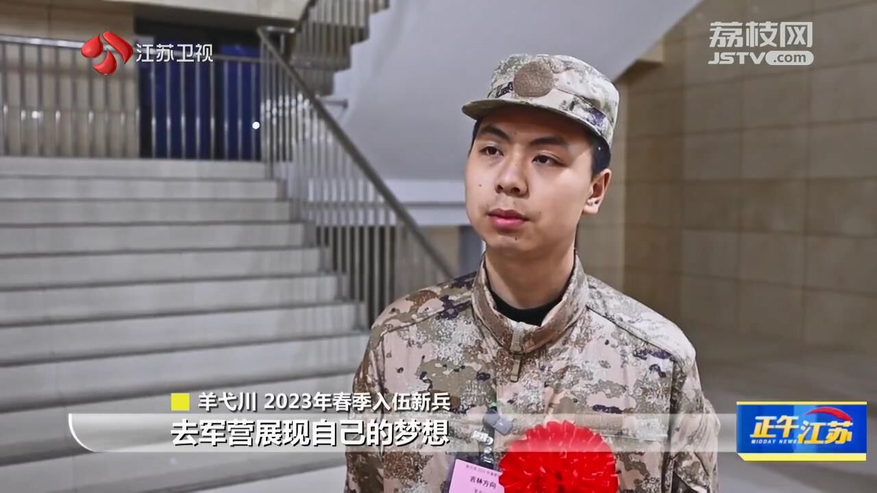 2023年春季入伍新兵羊弋川说,去军营展现自己的梦想,展现自己的青春,把青春和热血洒在战场上。