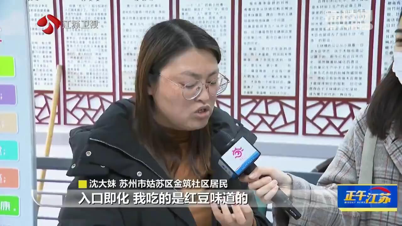 苏州市姑苏区金筑社区居民沈大妹:“入口即化,我吃的是红豆味道的,符合苏州人的口味。”