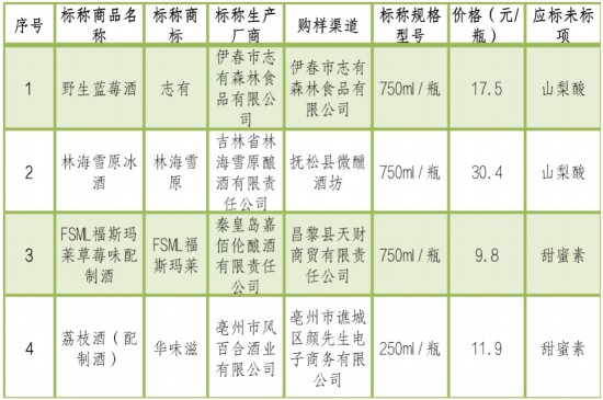 对照标签标识发现,有4款样品分别检出山梨酸、甜蜜素,但配料表中未标示,不符合相关标准要求。