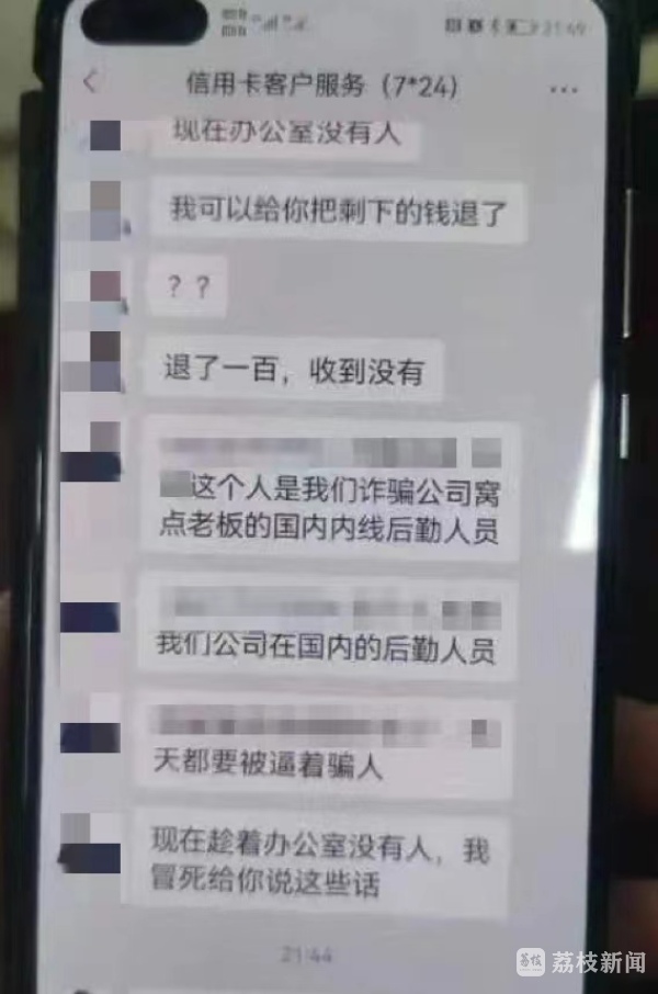 “这是我们诈骗公司窝点老板的国内内线后勤人员。”这番话明显起了效果,对方不仅陆续退还了剩下的钱,还主动提供了两个联系方式,并告诉李磊,他们“天天都要被逼着骗人”颇为身不由己,希望警方早日将案件侦破。
