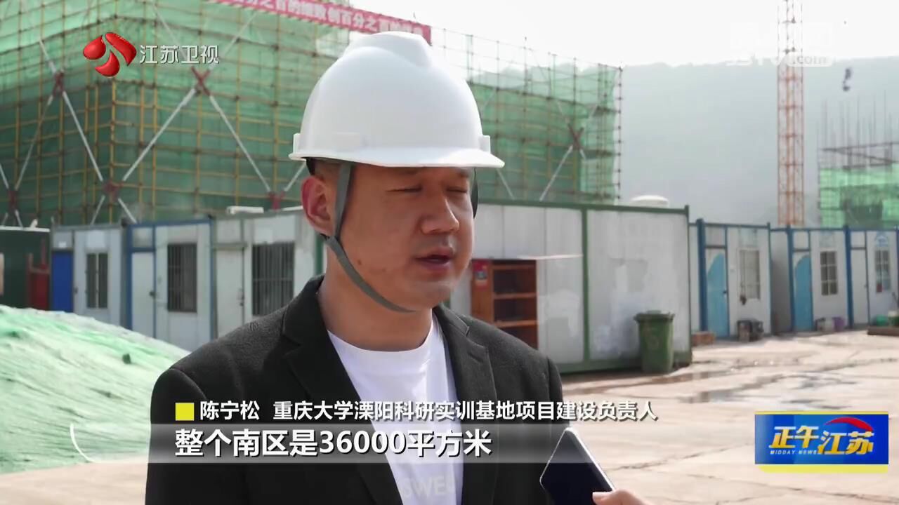 重庆大学溧阳科研实训基地项目建设负责人陈宁松说:“整个南区是36000平方米,第一标段整个主体已经全部封顶,已经进入装修阶段了。”