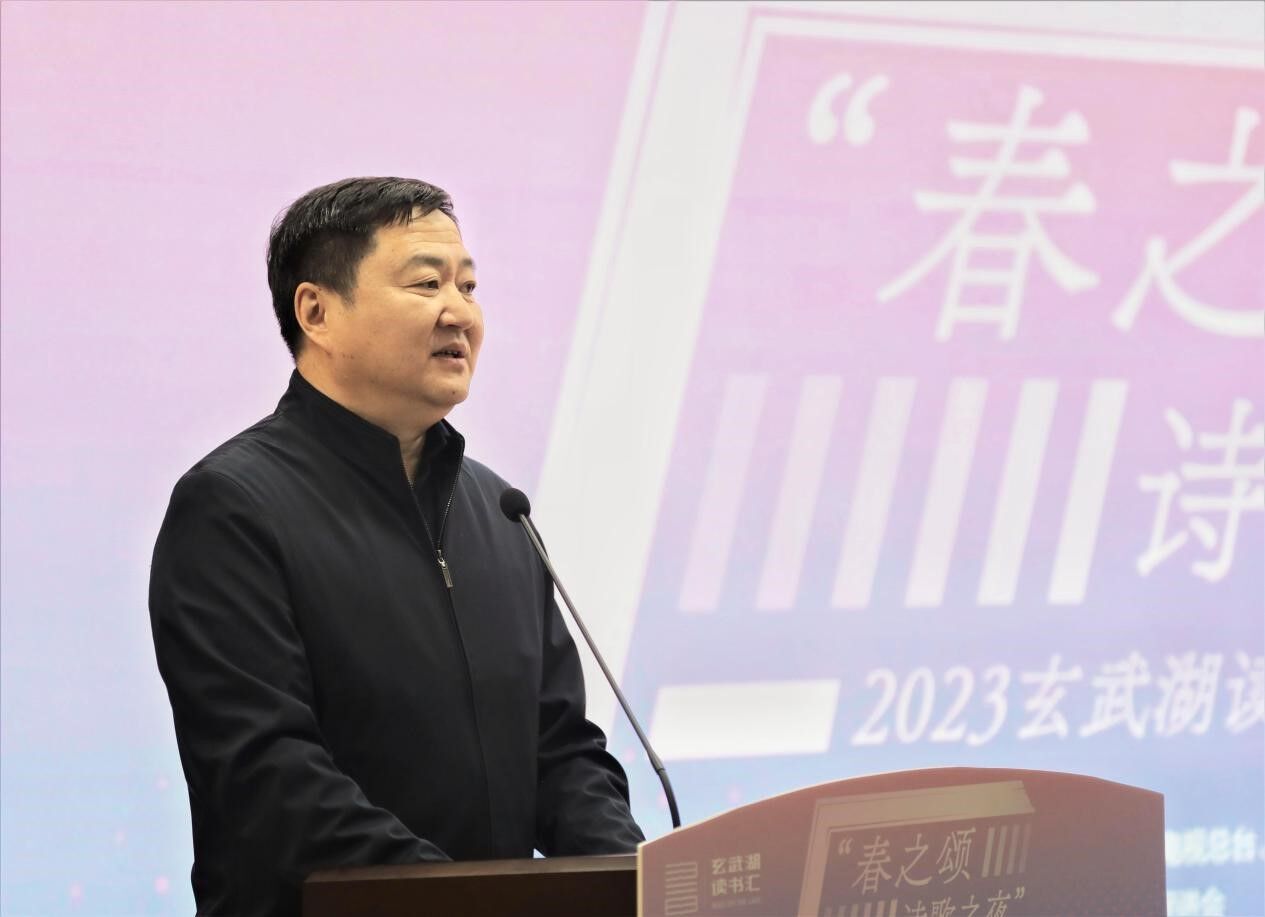 江苏省全民阅读促进会会长韩松林在致辞中说,“玄武湖读书汇”是江苏省全民阅读促进会、江苏省广电总台、南京市世界文学之都促进会等单位为促进全民阅读,擦亮南京“世界文学之都”名片而打造的阅读品牌,以“大家一起来阅读”为宗旨,以文学作品阅读为重点,已经成功地举办了14场阅读活动。今年,为了贯彻落实党的二十大报告“关于深化全民阅读活动”的部署要求,“玄武湖读书汇”将把活动带进校园、带进高校、带进社区。首场活动走进南航,是因为我们知道南航始终秉持着“效法羲和驭天马,志在长空牧群星”的精神,相信通过阅读,通过我们的共同奋斗,南航人将会在新时代、新征程中将更多杰出的成果写在天空,为祖国强盛,为中华民族的伟大复兴贡献我们独特的力量。同时我们也相信通过大家的辛勤和智慧,我们也会把中华动人的诗歌带上奥秘的苍穹。