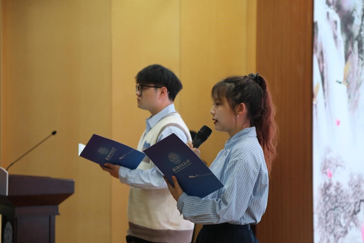 南航同学们带来了精彩的诗歌朗诵,来自江苏省广播电视总台的主持人、“金话筒”奖获得者姜林杉,播音指导徐涛为大家朗诵了艾青诗歌作品《迎接一个迷人的春天》与陈广德诗歌作品《春意》,声情并茂的诵读,将诗歌中的诗意与明艳的春景带到了每一位观众的眼前。