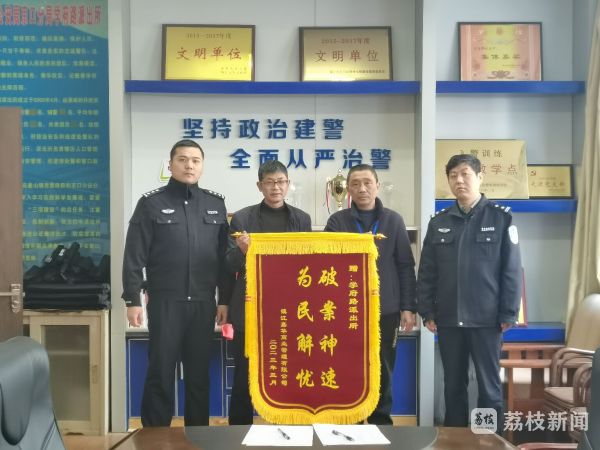 “真的是太感谢你们了,没想到这么快就破案了。”3月21日上午,镇江市民黄先生来到镇江市公安局京口分局学府路派出所,将一面印有“破案神速,为民解忧”的锦旗送给民警童云华,称赞他为民服务的精神和精湛的破案能力。