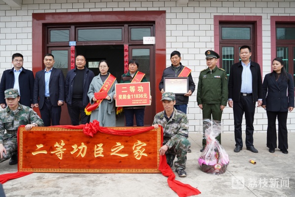 随后,送喜报工作小组来到四甲镇靶场村姜晓栋家,将立功喜报、“二等功臣之家”牌匾及奖励金、慰问金送到家属手中。姜晓栋现任第72集团军某旅连长,在2022年度工作中表现突出,荣立“战备训练二等功”。他带领的连队两年来完成实战化演训活动50余次,分别荣立集体一等功1次、二等功2次。姜晓栋服役期间事迹突出,前不久作为解放军和武警部队代表团一员,参加了十四届全国人大一次会议。“今天收到喜报,我们全家人都感到很温暖。”姜晓栋妻子张佳丽说,“作为他的家属,希望他在部队再接再厉,做出更多成绩。他保护‘大家’,我守护‘小家’,做他最坚强的后盾。”