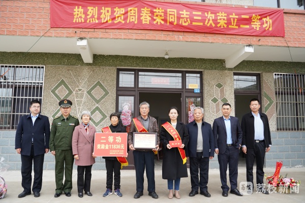 家住四甲镇合兴村的周春荣现任海军某部参谋长,服役期间多次荣立三等功,2022年度因完成任务成绩突出,荣立二等功,这是他第三次荣立个人二等功,这一成绩在当地传为佳话。同为现役军人的妻子邵华收到喜报时激动地表示:“感谢政府对我们家的关心关怀,我们俩会继续扎根部队,为军队添功、为家乡争彩。”