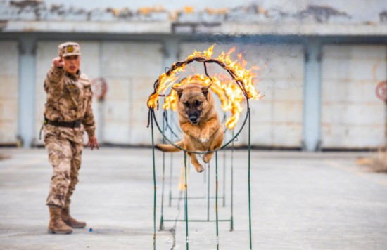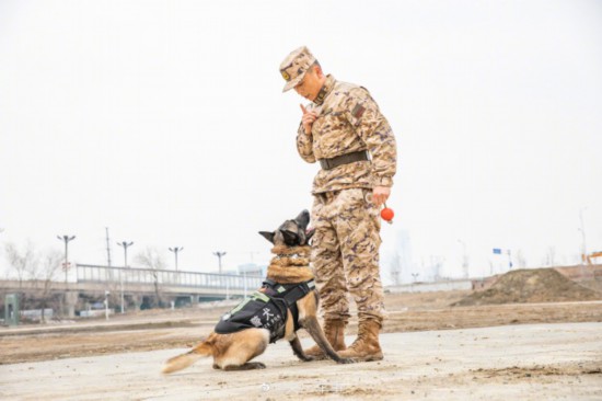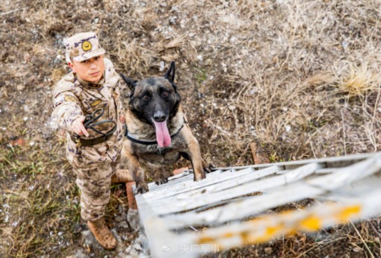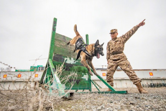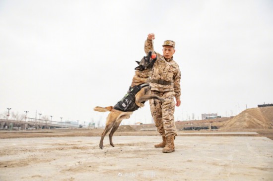 近日,武警新疆总队某支队组织警犬专业训练,强化人犬协同能力,为遂行多样化任务奠定基础。(王琛 王冬 余博)