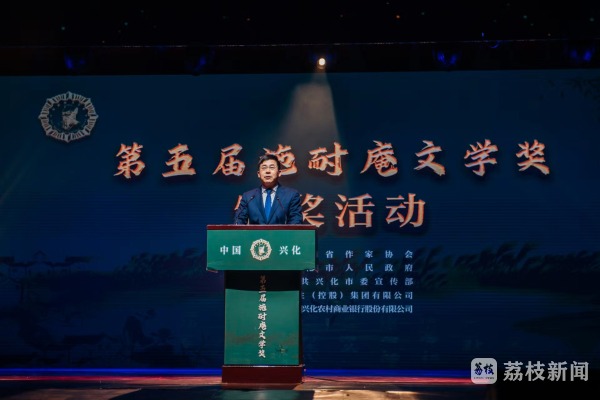 兴化市委书记陈锋剑在致辞中表示,施耐庵文学奖见证并推动了中国文学的繁荣发展,越来越成为当代文坛备受关注度、更具含金量的文学奖项之一。作为中国长篇小说的发祥地,兴化将大力推进历史文化名城建设,发扬光大施耐庵文化,让“板桥故里 水浒摇篮”的城市美名远扬海内外。他希望现场嘉宾及广大文学爱好者,多来兴化走一走、看一看,多来施耐庵的故乡,感受里下河鱼米水乡不一样的风土人情,感受新时代楚水大地蓬勃向上的发展热潮,创作出更多有筋骨、有温度、有影响的文艺精品,为激发文化自信、激荡文化伟力作出更大贡献。