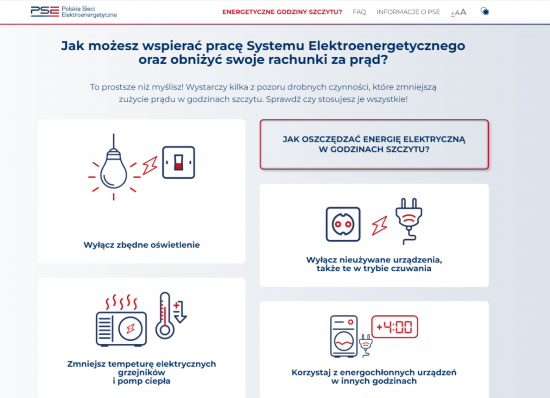 RT称,根据波兰电网运营商PSE网站发布的信息,18时至21时被定为“能源高峰时段”。该公司解释说,由于能源供应“非常紧张”,该时段内用电需求增加,迫使电网“以最高载荷运行”,并且最不环保的燃煤发电厂也得运行。为了减轻负荷,PSE建议家庭关掉不必要照明,降低电热器温度,避免在用电高峰时段使用洗衣机、水壶、微波炉和烤箱等“能源密集型设备”。