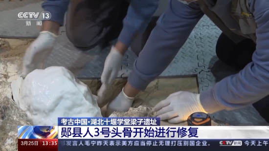 湖北十堰学堂梁子遗址 “郧县人”3号头骨开始进行修复
