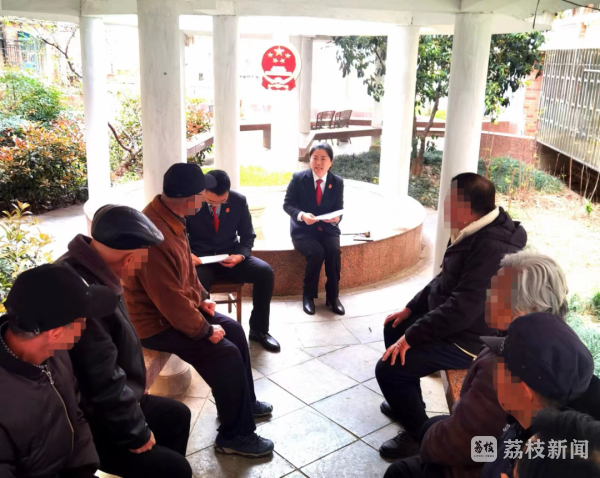 放好国徽、搬上椅子……开庭审理工作准备就绪,一场庭审就地在小区休闲长廊开始了。今天(3月25日),记者从南京市秦淮区人民法院红花法庭了解到,该院法官到社区开庭审理了一起因为主水管堵塞造成业主家反水引发的财产损害赔偿纠纷。