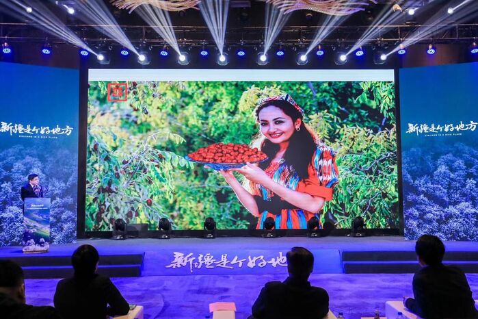 来自和田地区、伊犁哈萨克自治州、阿克苏地区等众多文旅局长组团“花式”强力推介新疆文旅资源的现场吸引了众多的目光。