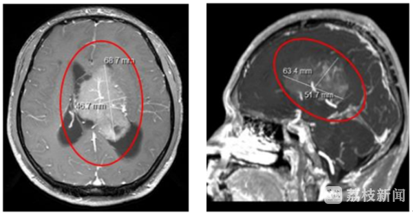 突如其来的变故,让全家人陷入惊慌。肿瘤生长在小刘大脑中线部位脑室内,直径有7厘米左右,和拳头差不多大,已严重影响脑脊液循环,如不及时开展手术进行切除,随时可能突发脑疝造成昏迷引发生命危险。常州市第一人民医院神经外科邵耐远主任医师立即将刘先生收治入院,并完善相关检查。