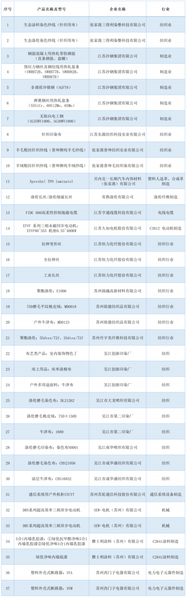 2022年度苏州市国家级绿色设计产品名单