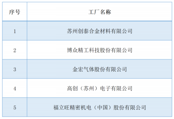 2022年度苏州市国家级绿色工厂名单