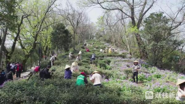 悠悠清茶香,春日采茶忙。游客漫步在军山最美二月兰山道,品一杯“春天的味道”,体验赏花品茶的特色之旅。