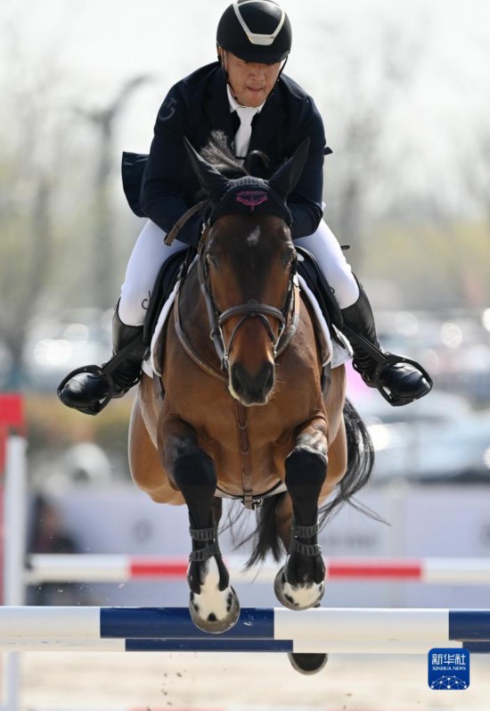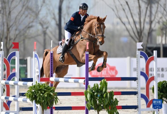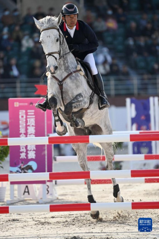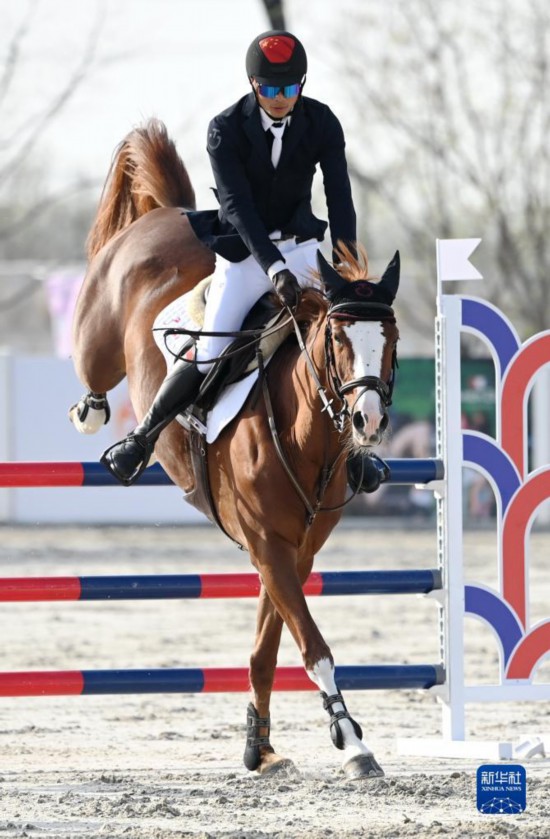 3月27日,内蒙古队选手额纳日乐与赛马闪电在三项赛个人赛中,额纳日乐以32.3的总罚分获得季军。新华社记者 李一博 摄