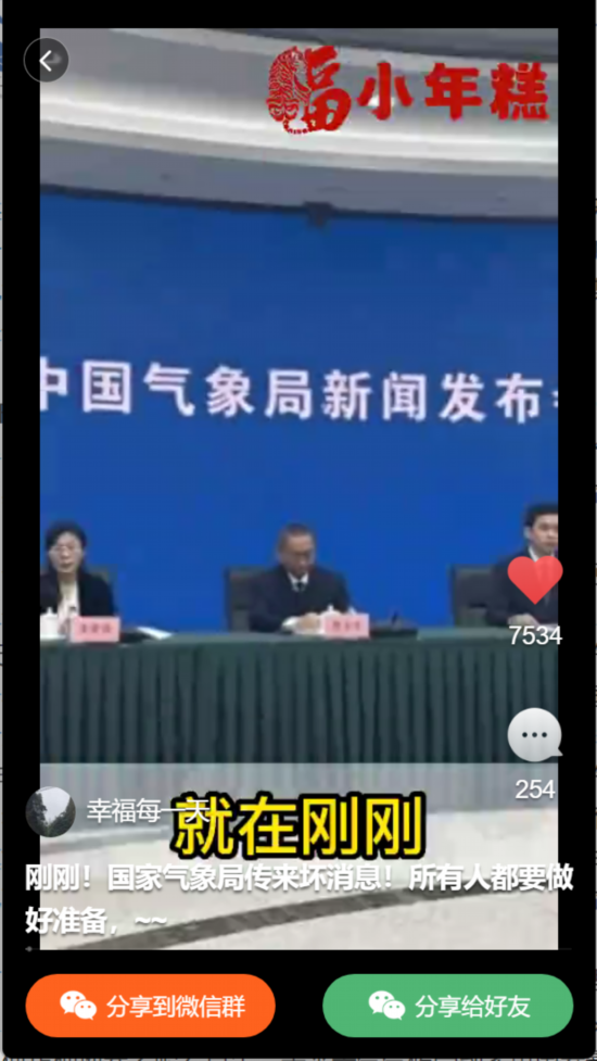 一检验。回溯结论信息源,还原事实,破除“心理战术”。视频里“就在刚刚,国家气象局传来坏消息”其实是指在2月6日中国气象局召开的例行新闻发布会上,国家气候中心初步研判认为,今年全国气候年景总体偏差(我国最近几年的气候预测都是如此),极端天气气候事件仍呈现多发强发态势(在全球变暖的大背景,实属正常)。视频中的“刚刚”“坏消息”听起来有种事态突发且性质严重的意味,但回溯信息源可知,这是中国气象局每月例行新闻发布会上的一条气候预测信息。并不是“刚刚传来的坏消息”,事态也远非如视频所渲染般岌岌可危。回溯结论信息发布源头,检验事实,可破除自媒体营造的“局势危急”的心理战术。