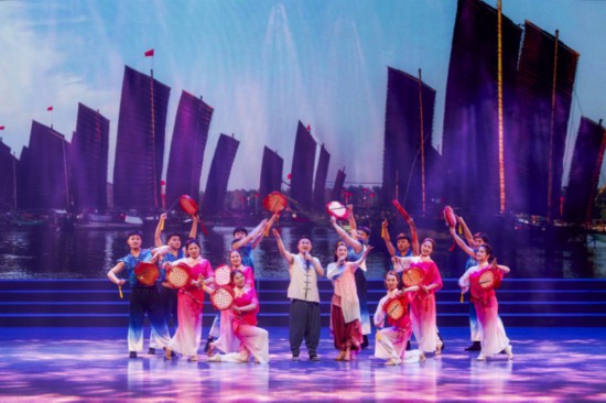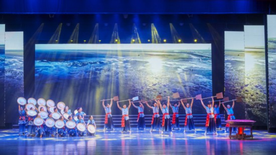 当晚七点半,由五市选送的16件原创精品节目绽放在盛会舞台——淮海戏歌《我的家乡有多美》、苏北琴书《美丽家园》,在原有地方戏曲的基础上守正创新;舞蹈《湖中情》《渔鼓情歌》《海韵》等,结合非遗、民间、流行等丰富的舞蹈元素,融合当地民风民俗,增添了整台晚会的视觉观赏性;小品《流量时代》、小话剧《一坛运河水》、小淮剧《泵闸卫士》故事情节跌宕起伏,演员表演投入感人;表演唱《海莲籽》、唢呐表演《红装》、小品《一担包子六个兵》极具视听冲击;演出在歌舞《再一次出发》中落下帷幕。