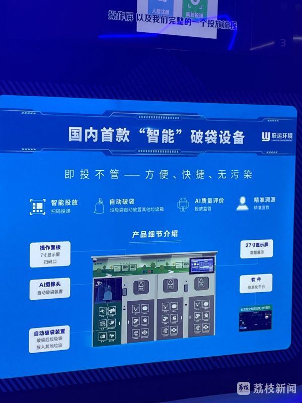 这款产品的研发及生产厂家,是来自浙江省的浙江联运环境工程股份有限公司。公司市场总监徐华丰在接受记者采访时表示:“这款国内首款智能破袋设备,能够让居民在投放的时候不需要人工破袋,通过AI技术能够实现机器内自动破袋。减少了居民投放破袋的环节,提高了垃圾分类的效率和准确率。”