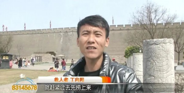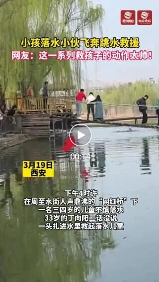 正准备下水救人时有一名小伙已抢先一步跳到了水里