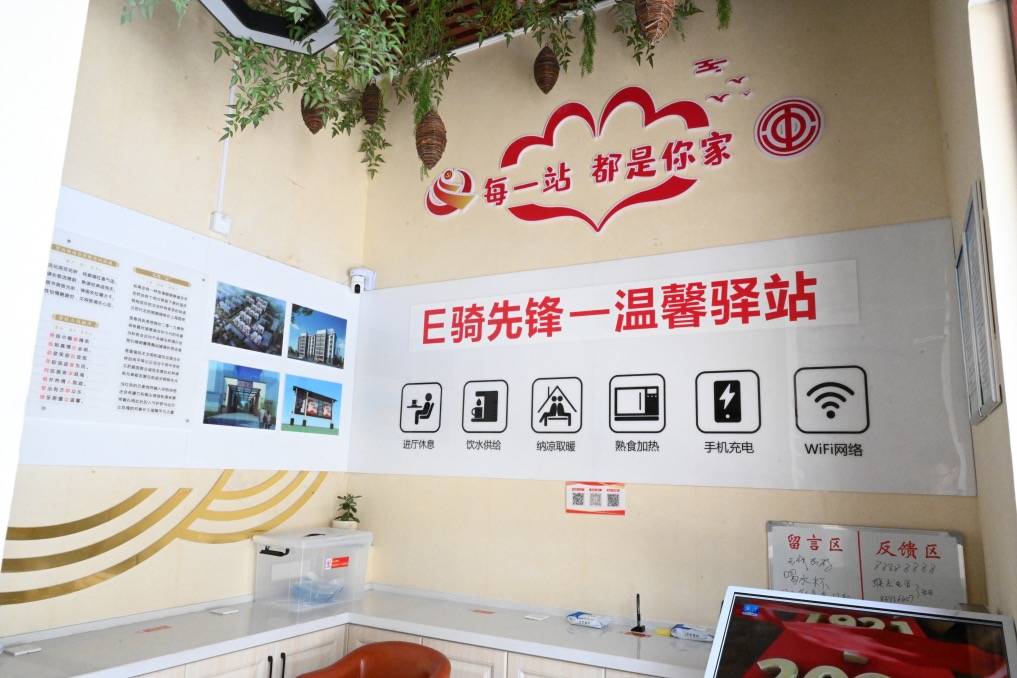 外卖小哥送完单可以走进“温馨驿站”喝口水,给手机充个电。“以前,跑单累了,就在电动自行车上趴一下。现在好了,不仅可以在‘温馨驿站’休息,还可以免费使用创可贴、感冒药等常用药品及享受法律政策咨询服务,十分贴心!”外卖哥小李说。